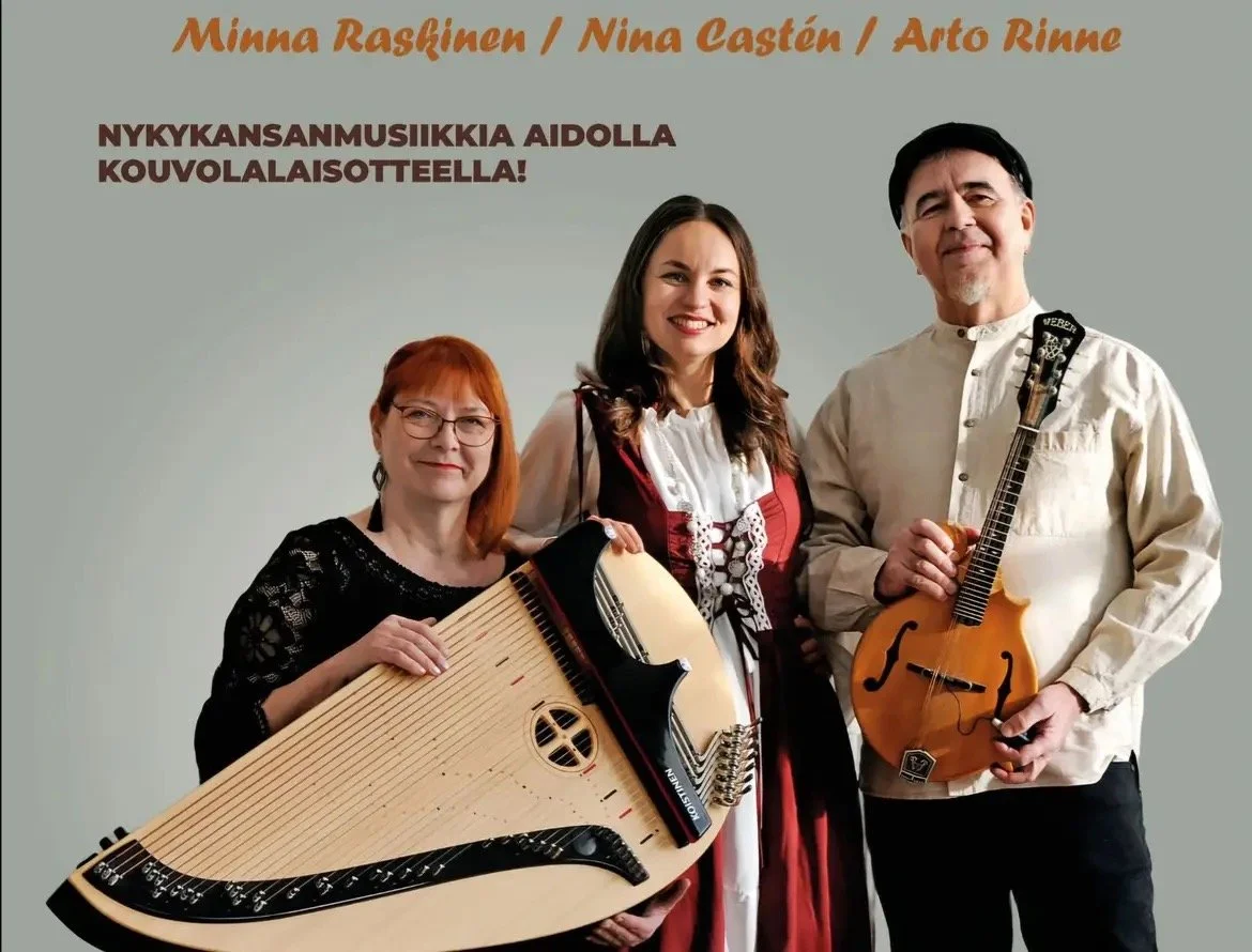 Laulajamuusikot Arto Rinne ja Nina Castén perustivat vuosi sitten Kouvolassa harvinaislaatuisen duon, joka laajenee ensimmäistä kertaa trioksi yhteiskonsertissa sippolalaisen kanteletaiteilijan Minna Raskisen kanssa. Taidekeskus Antareksessa järjestettävä kahvikonsertti su 1.3.2026 tarjoaa aimo annoksen inkeriläistä ja karjalaista nykykansanmusiikkia.